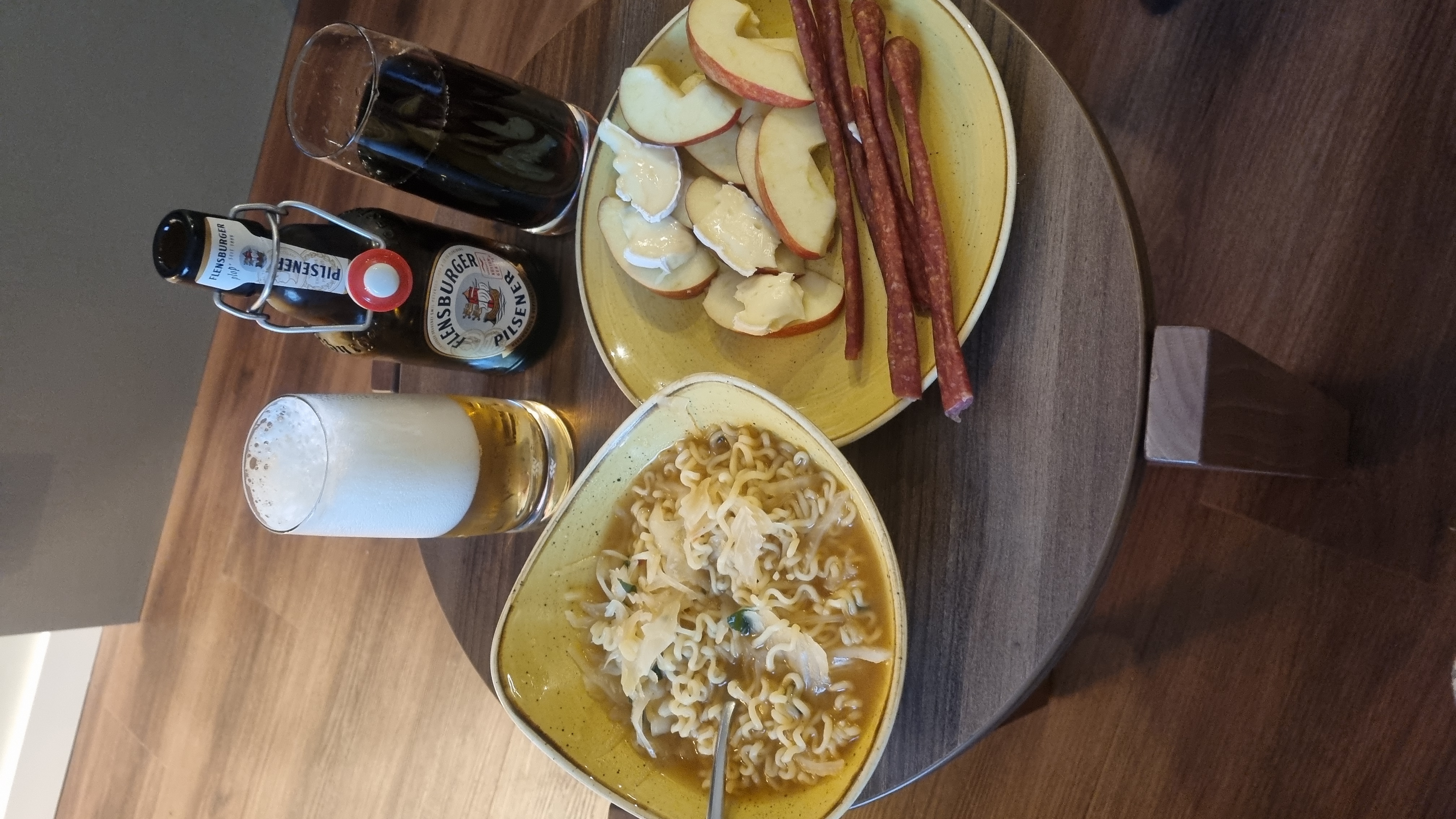여행지에서의 첫날, 거창한 코스요리보다 마음이 끌리는 건 소박한 한 상. 오늘은 독일 도착 첫날의 저녁을 담아봤습니다. 맥주 한 병과 익숙한 야식, 그리고 이국적인 간단 안주. 이 조합이 의외로 찰떡이더라고요!