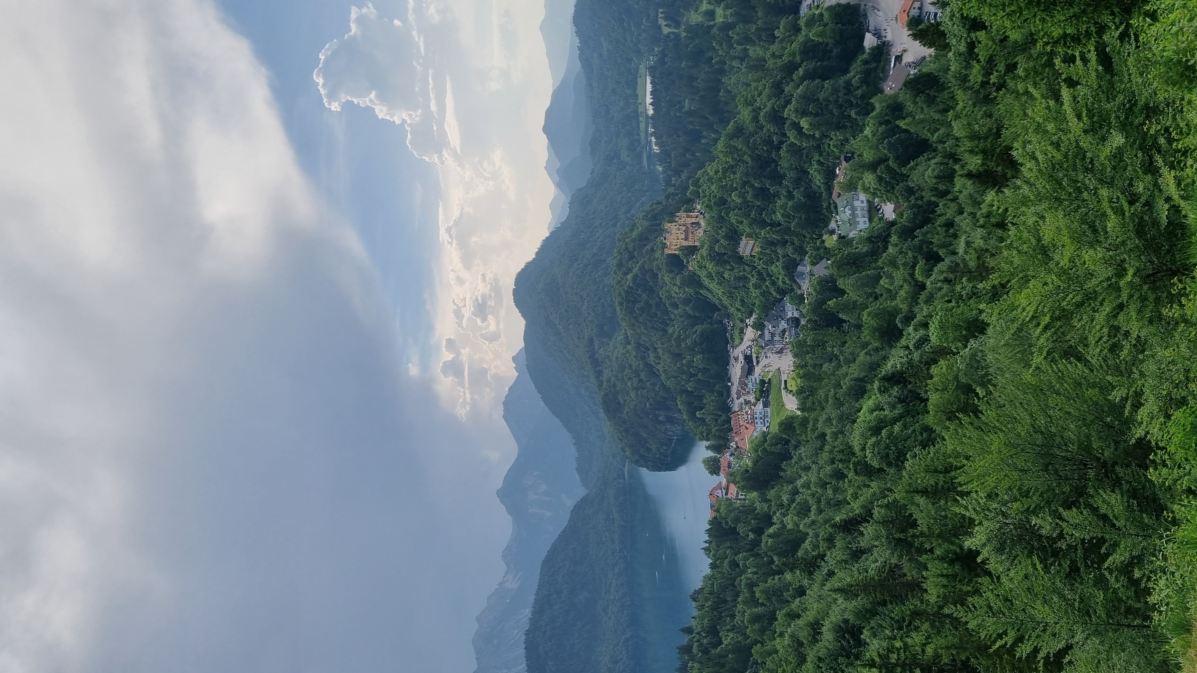디즈니성으로 알려진 노이슈반슈타인 성(Neuschwanstein) 정상에서 바라본 호수를 낀 마을들이 너무 아름다웠어요. 하늘에는 패러글라딩 호수위에는 세일링 요트! 비현실적인 아름다운 풍경을 눈과 마음에 담고 알프스 산자락 비어가르텐으로 향했어요